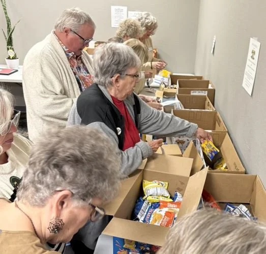 Pilots pack sensory items in bags for distribution to emergency vehicles in Barton County and surrounding areas.
